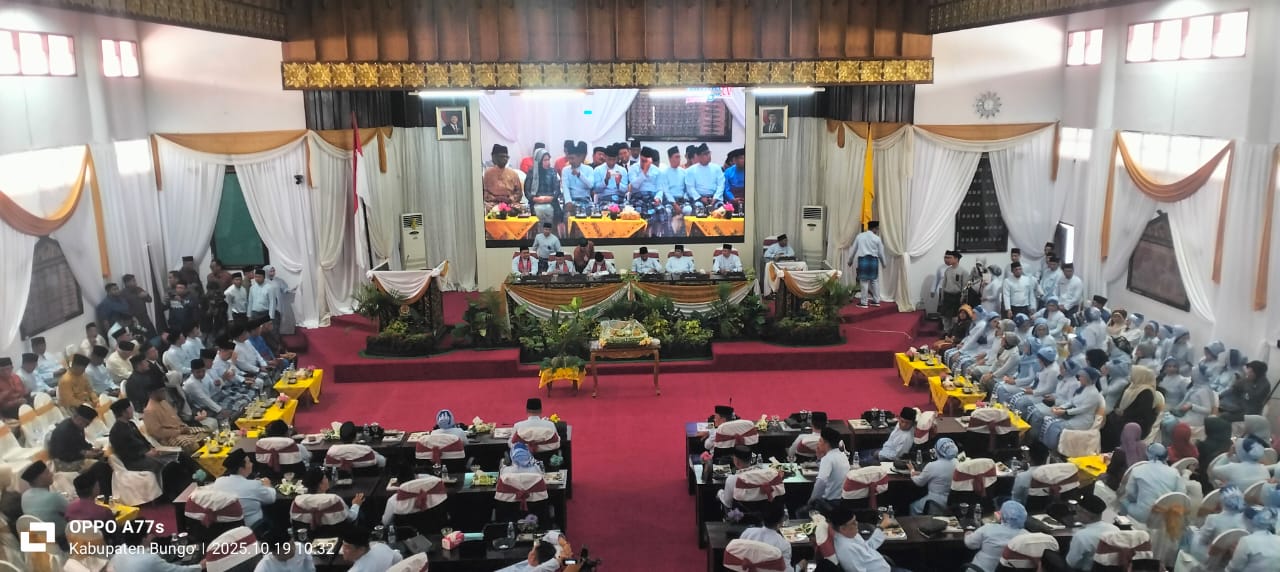 Muara Bungo, sibarnasnews.com — Dewan Perwakilan Rakyat Daerah (DPRD) Kabupaten Bungo menggelar Rapat Paripurna Istimewa dalam rangka memperingati Hari Ulang Tahun (HUT) ke-60 Kabupaten Bungo. Acara berlangsung khidmat di ruang ra...
