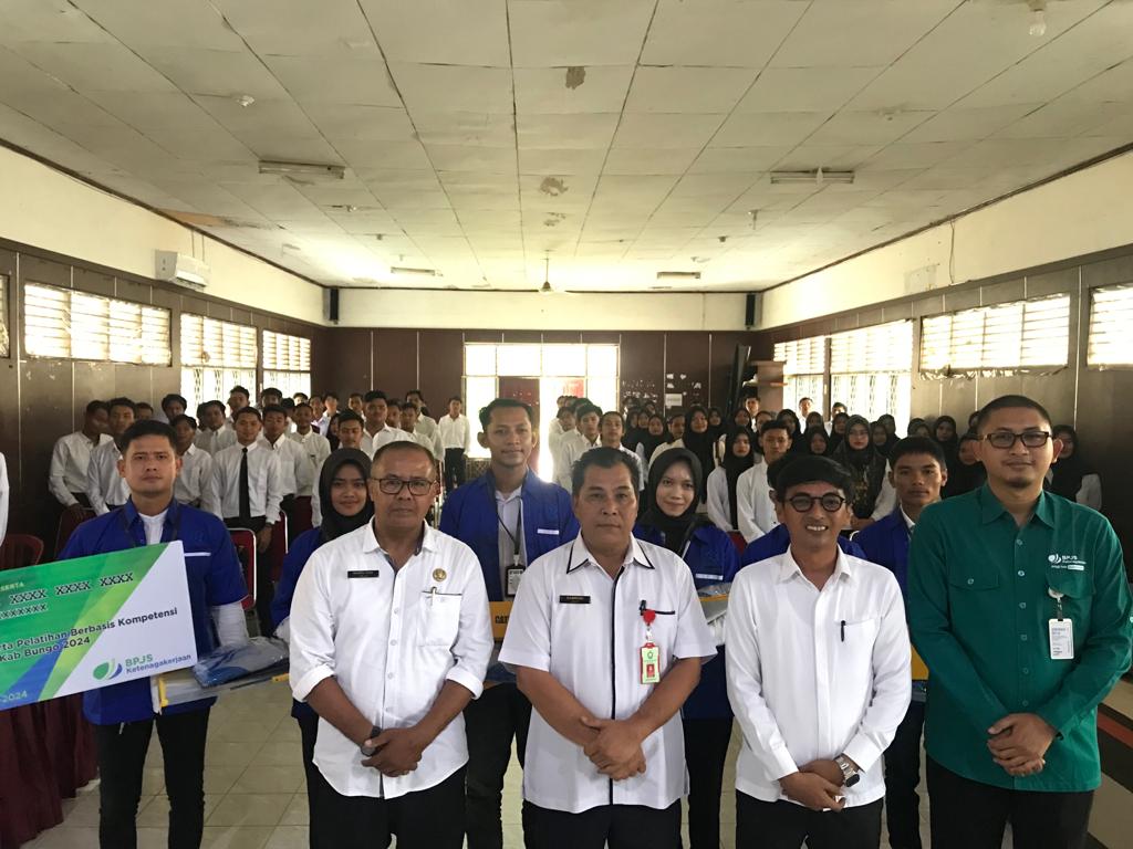 Pembukaan Pelatihan Berbasis Kompetensi sebanyak 7 paket dengan jumlah peserta sebanyak 112 orang dibuka oleh Kepala Dinas Tenaga Kerja dan Transmigrasi kabupaten Bungo serta dihadiri Kepala BPJS Ketenagakerjaan.